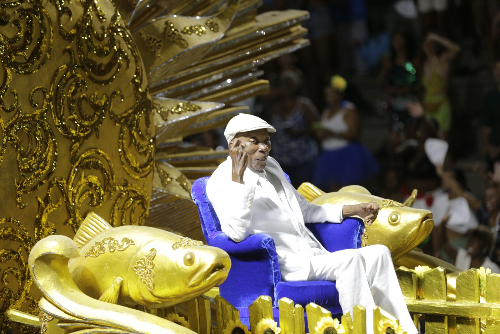 Milton Nascimento no desfile da Portela — Foto: Guito Moreto / Agência O Globo