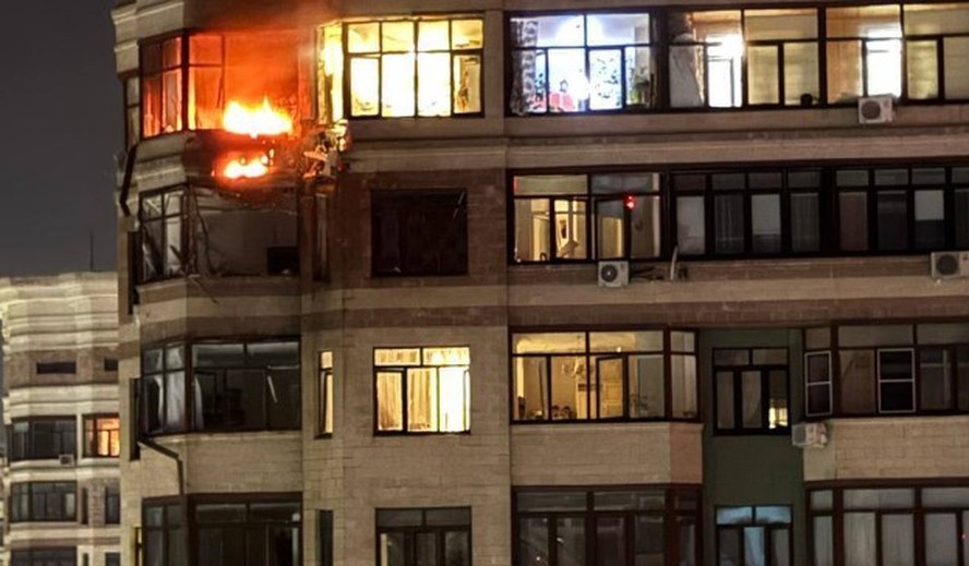 Prédios residenciais foram atingidos pela queda de escombros dos drones ucranianos,em Moscou — Foto: Reprodução / redes sociais