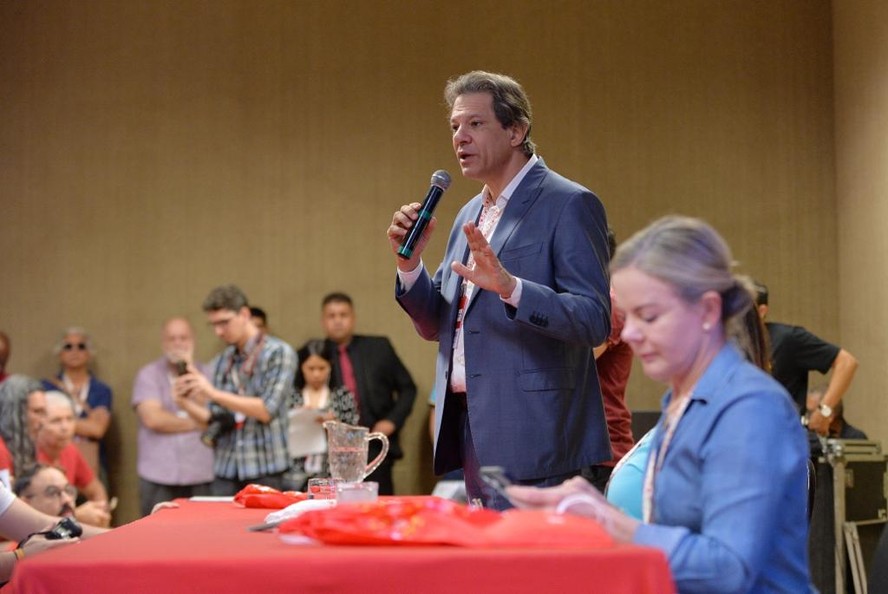 Gleisi Hoffman e Fernando Haddad durante evento do Partido dos Trabalhadores — Foto: Alessandro Dantas/Divulgação PT