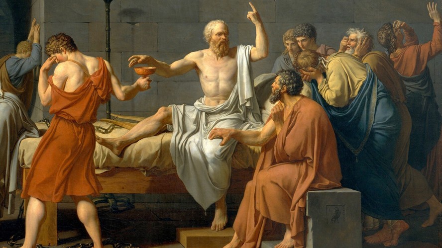 A morte de Sócrates,de Jacques-Louis David: \'O problema é que o descontrole se espalhou pra todo lado. Ninguém mais tem dúvidas sobre nada,e a raiva é proporcional às certezas\' — Foto: Repro
