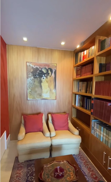 Cada detalhe foi planejado para garantir conforto e exclusividade. O revestimento em mármore Botticino iraniano — uma raridade —,marcenaria feita sob medida,cortinas automatizadas e um sofisticado sistema de automação de som e iluminação controlado por celular são algumas das características do imóvel de altíssimo padrão.