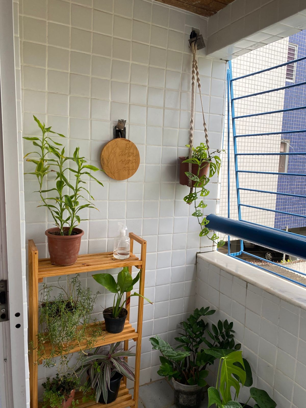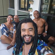 Diogo Almeida gosta de se reunir com os pais,entre eles Vilma,sua dupla no reality show,na varanda do seu apartamento. Ele decora com plantas — Foto: Divulgação