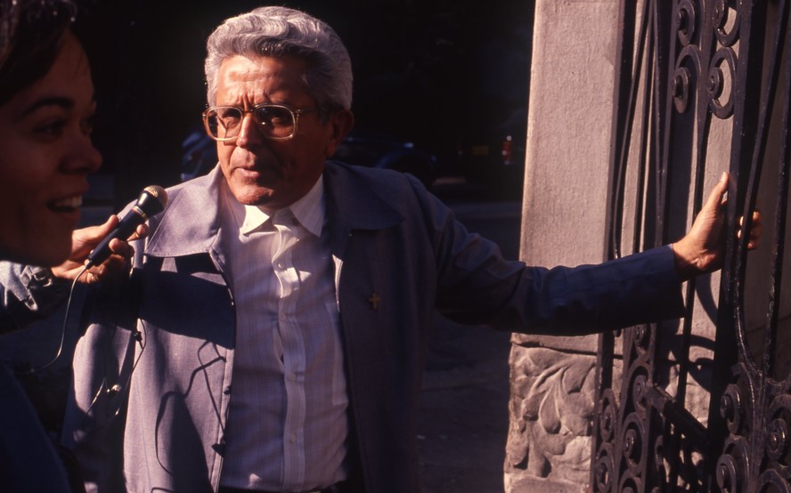 Dom Angélico Sândalo Bernardino chega ao Dops para depor sobre invasões de terra,em 1989 — Foto: Claudine Petroli / 22-5-1989