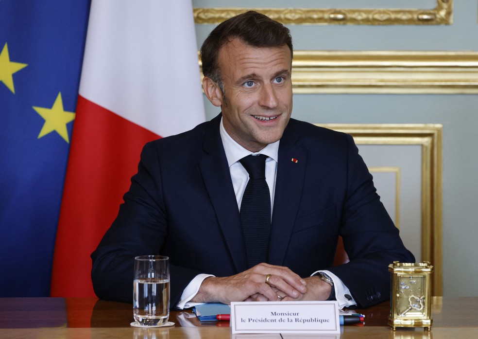 O presidente francês,durante a reunião com autoridades dos EUA,Ucrânia e Europa — Foto: Ludovic Marin / AFP
