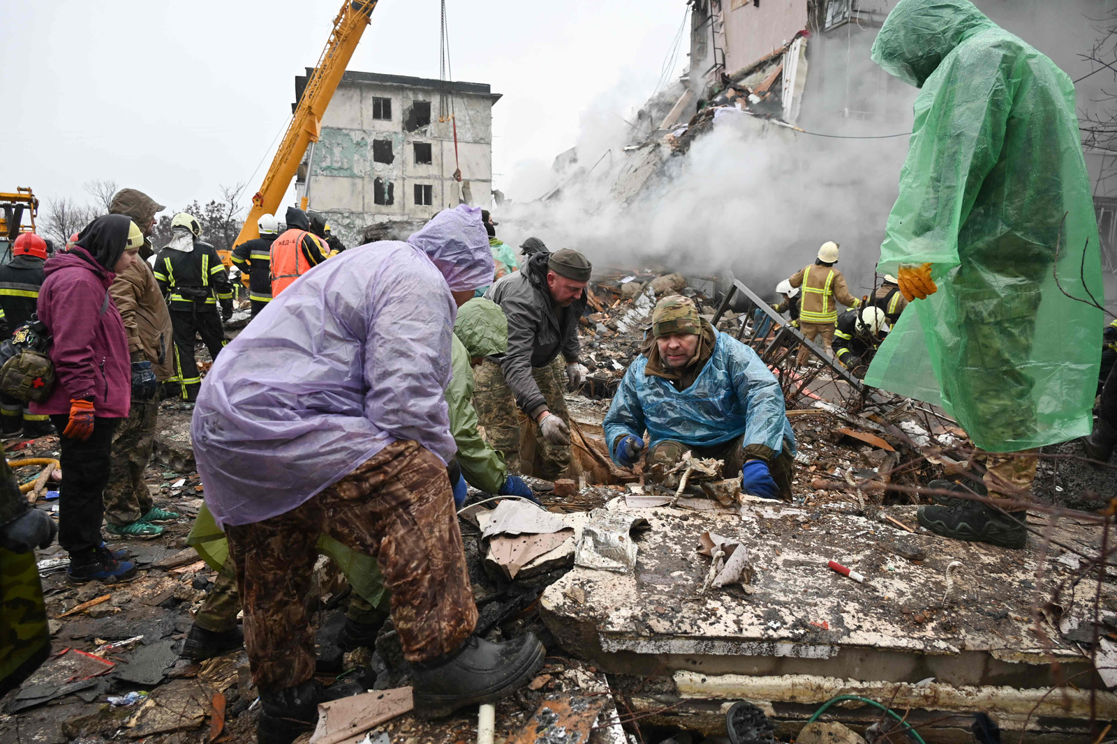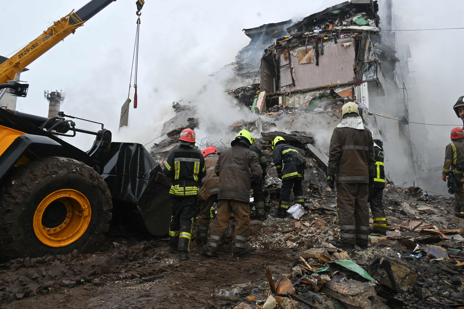 Equipes de resgate trabalham em escombros de prédio atingido por míssil russo em Poltava,na Ucrânia — Foto: SERGEY BOBOK / AFP