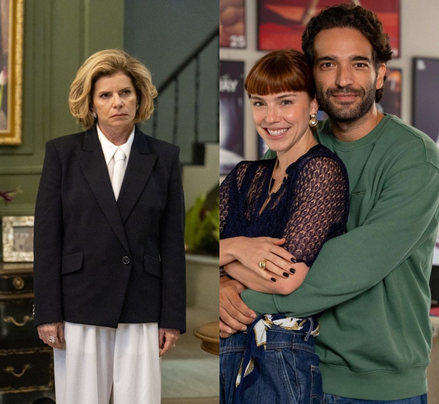Odete Roitman (Débora Bloch) arma plano para separar Solange (Alice Wegman) e Afonso (Humberto Carrão) — Foto: TV Globo