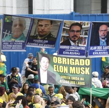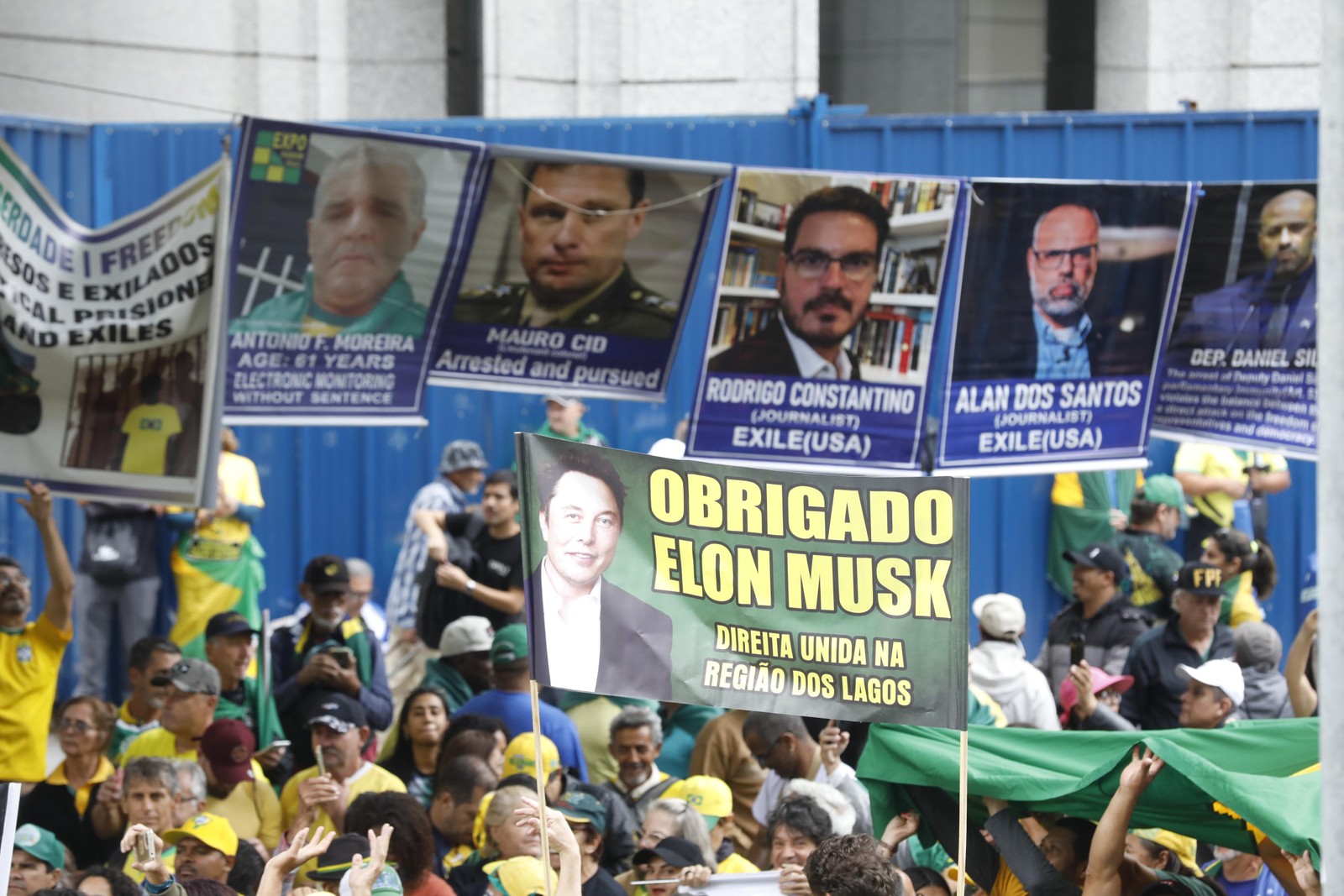 Bolsonaristas em ato na Paulista com faixa "Obrigado Elon Musk" — Foto: Edilson Dantas - Agência O Globo