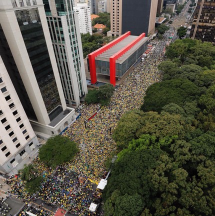 Momento do discurso de Jair Bolsonaro durante ato na Avenida Paulista — Foto: Edilson Dantas/O Globo
