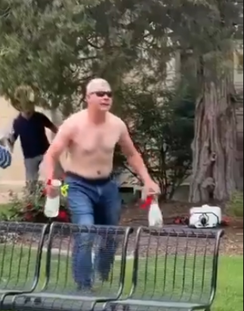 Um vídeo que se presume ser do ataque mostra um homem sem camisa,com garrafas transparentes nas mãos,caminhando enquanto a grama à sua frente está em chamas. É possível ouvi-lo dizer "Acabemos com os sionistas!",dirigindo-se a várias pessoas que prestavam socorro a alguém no chão. Em outro vídeo,um policial corre para prender o homem,que está deitado no gramado,enquanto várias pessoas se aglomeram nos arredores.
