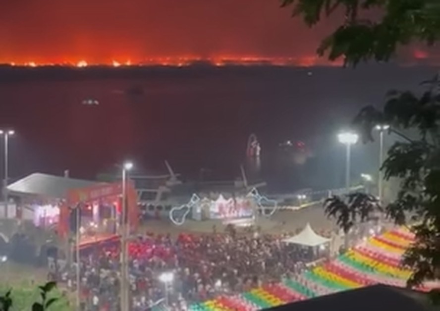 Vídeo mostra incêndio como plano de fundo para Arraial do Banho de São João em Corumbá (MS) — Foto: Reprodução/Instagram