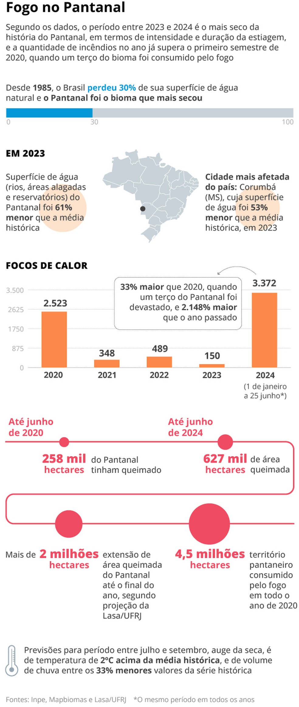 Os primeiros seis meses de 2024 são um recorde de incêndios na série histórica,o que levou o governo do Mato Grosso do Sul a decretar situação de emergência no estado nesta segunda (24).