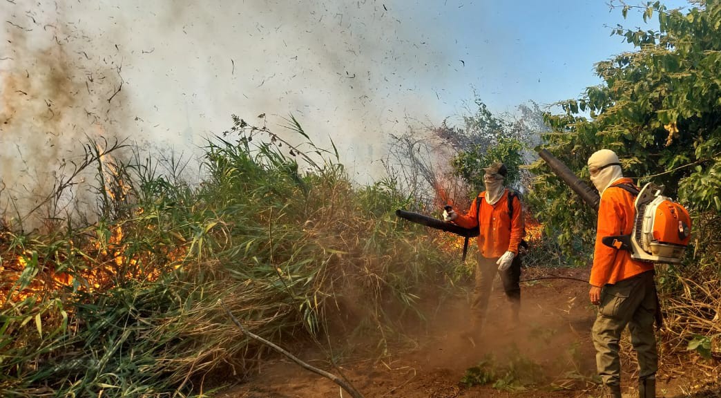 Brigada Alto Pantanal atua para reduzir incêndio em Paraguai-Mirim — Foto: IHP (Instituto Homem Pantaneiro)