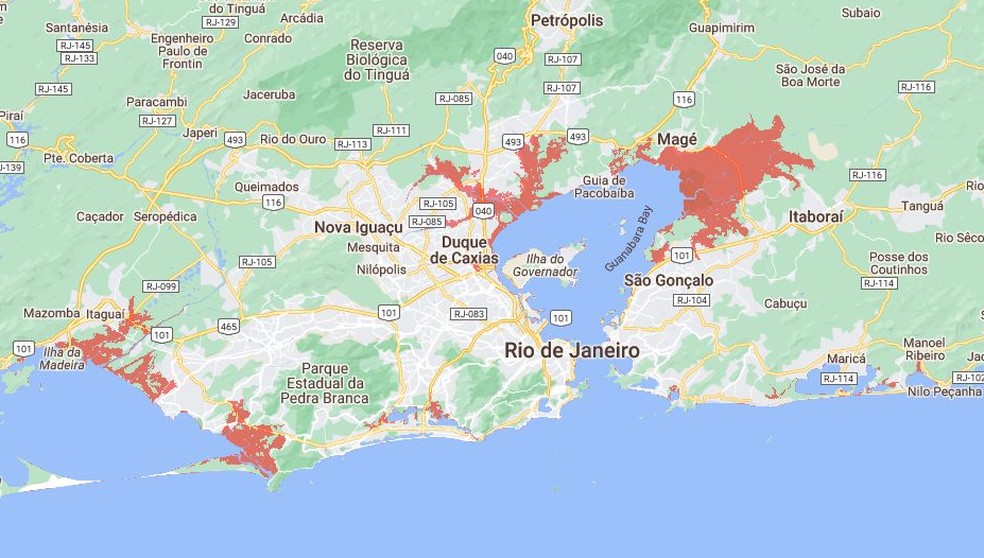 Áreas afetadas no Rio de Janeiro — Foto: Climate Central