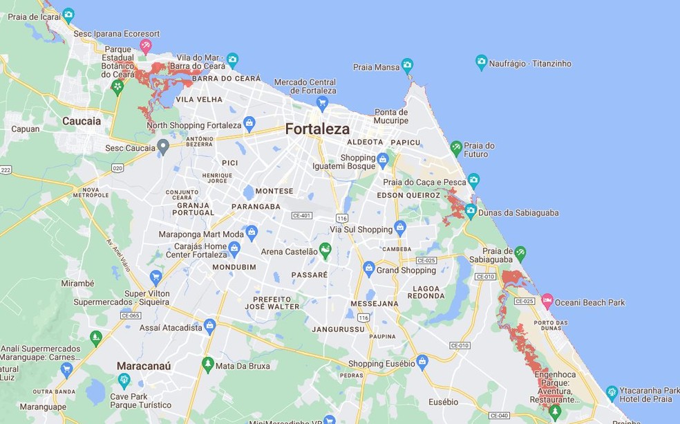 Áreas afetadas em Fortaleza — Foto: Climate Central