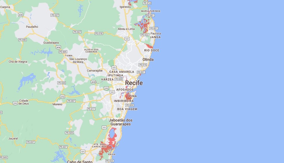 Áreas afetadas no Recife — Foto: Climate Central