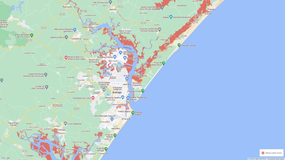 Áreas afetadas em Aracaju — Foto: Climate Central