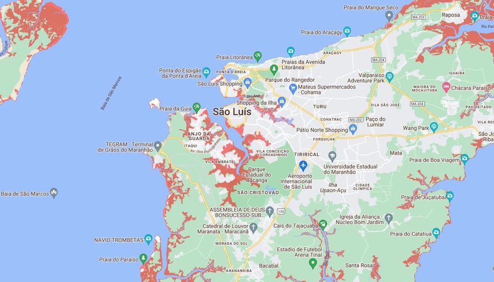 Áreas afetadas em São Luís — Foto: Climate Central