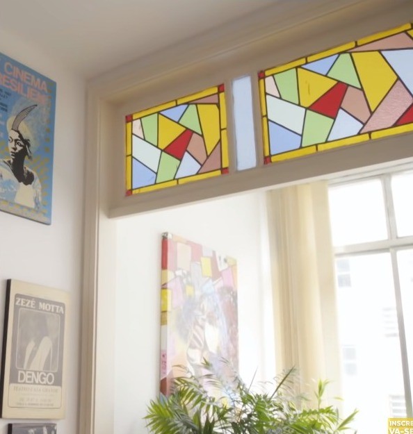 Vitral do apartamento de Zezé Motta — Foto: Reprodução/YouTube