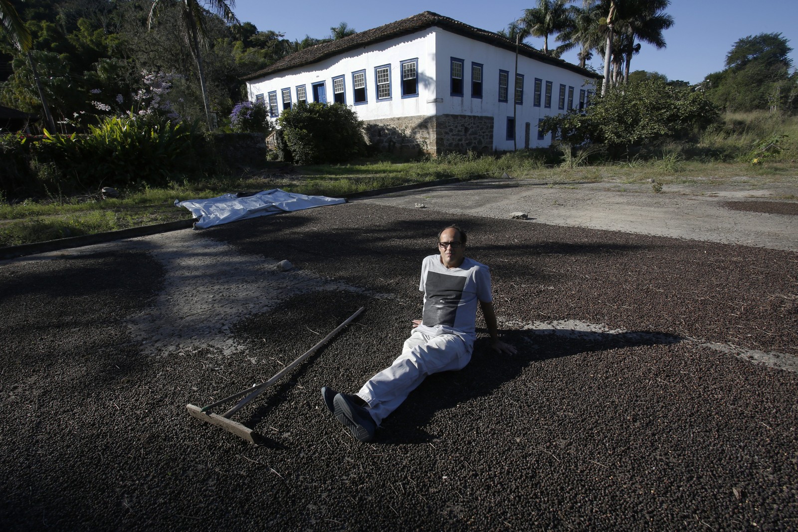 Café do Vale do Paraíba passa por avaliação da Embrapa para receber indicador geográfico de qualidade. Na foto,proprietário. Fazenda na fase de secagem dos grãos de café. — Foto: Custódio Coimbra