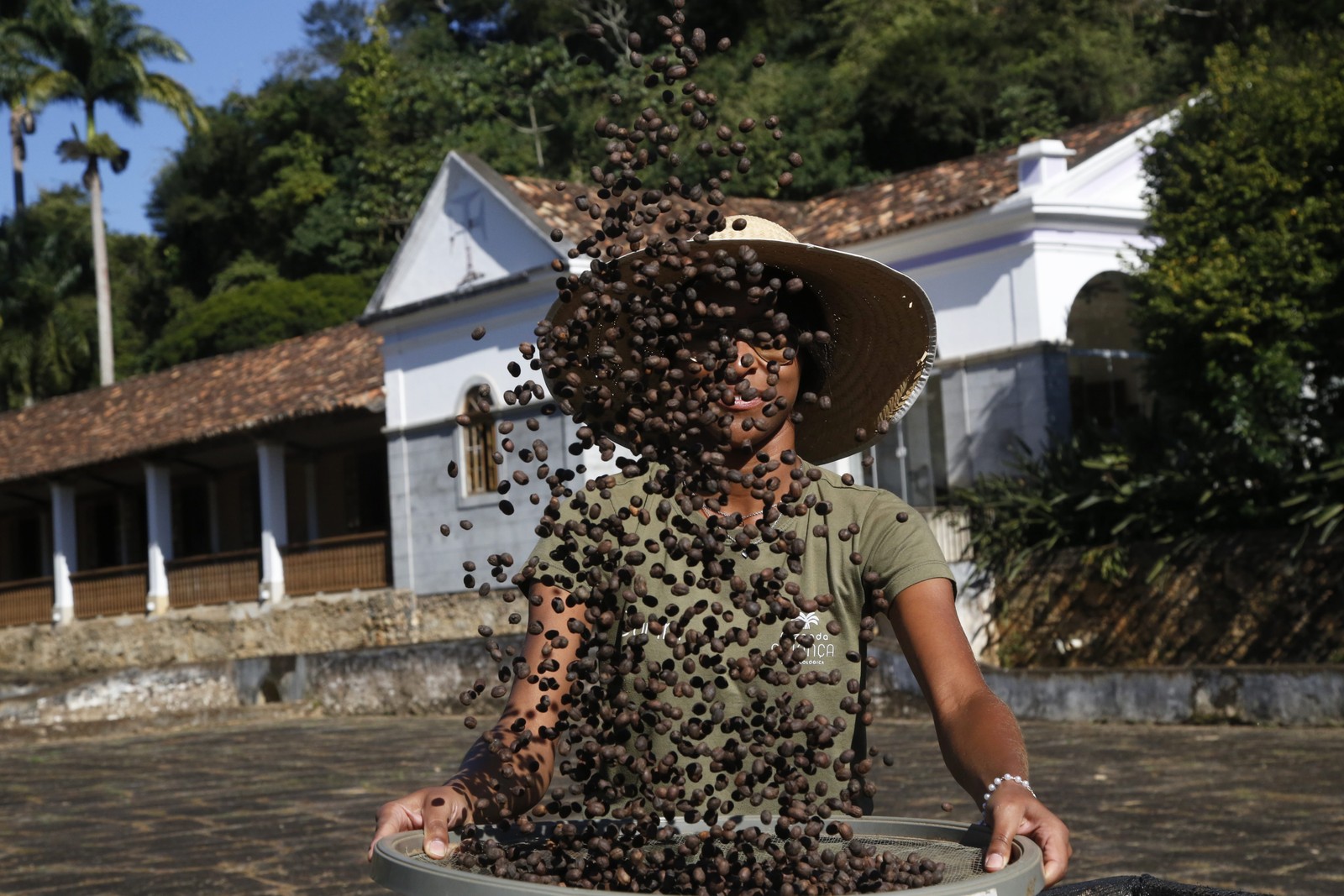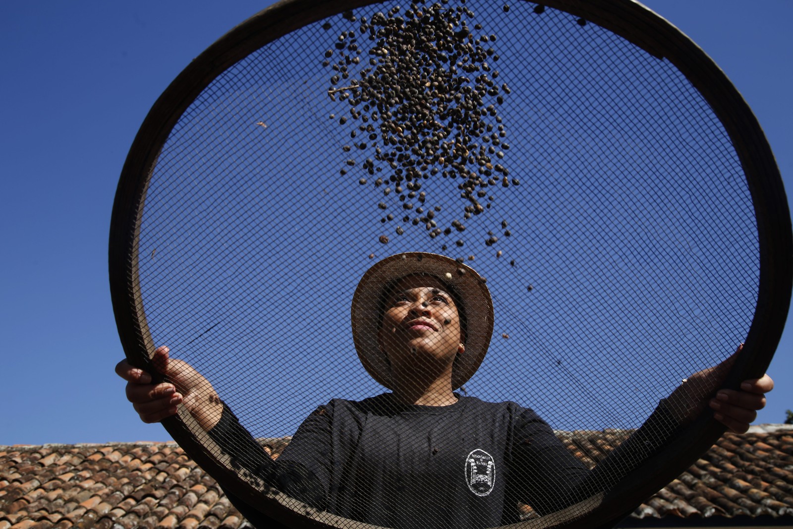 Nova geração. Milena Nascimento,de 25 anos,trabalha na Fazenda Alliança em todas as etapas da produção de café: com a peneira,ela revira os grãos de produção orgânica no processo de secagem