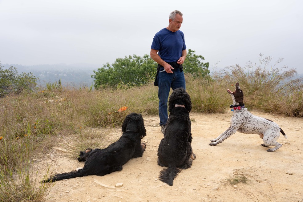Kennedy faz trilha com seus cachorros em Los Angeles — Foto: Ruth Fremson/The New York Times