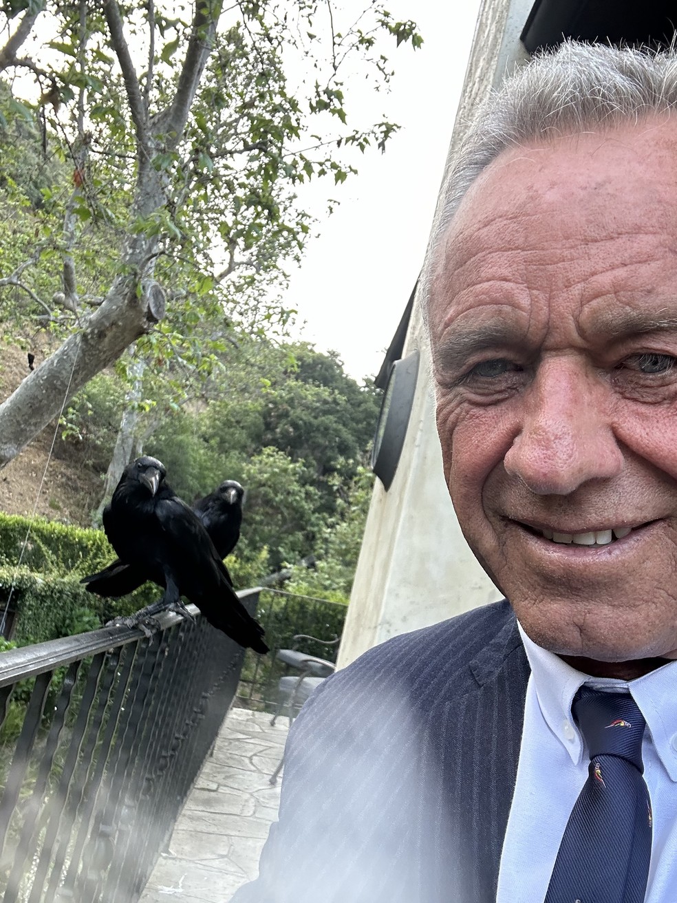 Kennedy tira selfie com casal de corvos em sua casa,em Los Angeles — Foto: Robert F. Kennedy Jr. via The New York Times