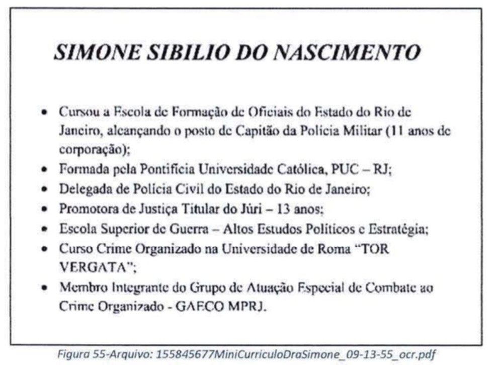 As investigações mostram também registro de impressão do currículo da promotora Simone Sibilio do Nascimento,do Grupo de Atuação Especial de Combate ao Crime Organizado (Gaeco) do Ministério Público do Rio,bem como um resumo do número de denúncias oferecidas sobre o caso Marielle.