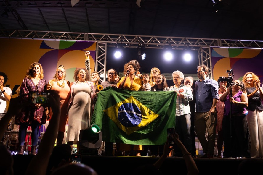 Talíria Petrone (PSOL) segura bandeira do Brasil no lançamento de sua pré-candidatura à Prefeitura de Niterói — Foto: Divulgação
