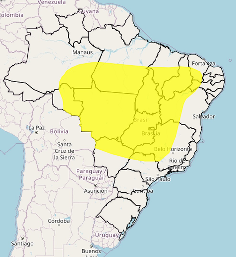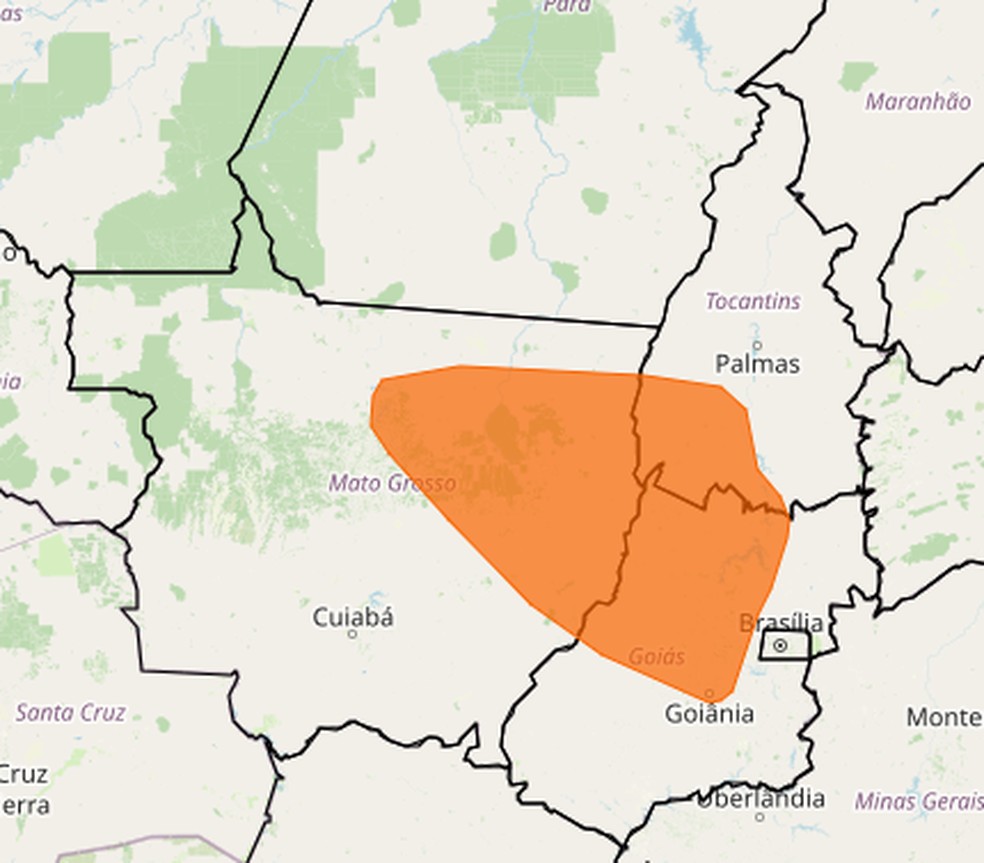 O Instituto Nacional de Meteorologia (Inmet) emitiu um alerta de "perigo" — aviso de grau intermediário — para baixa umidade no Mato Grosso (MT),Tocantins (TO) e Goiás (GO),e o fenômeno chega a atingir a capital goiana. Além disso,um alerta de "perigo potencial" — de menor grau na escala do órgão — também para baixa umidade foi emitido para um total de 14 estados e o Distrito Federal (DF).