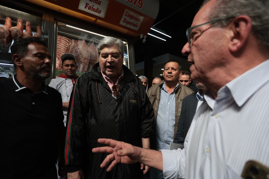 O apresentador José Luiz Datena faz seu primeiro ato de pré-campanha no Mercado Municipal,em São Paulo — Foto: Maria Isabel Oliveira/O Globo