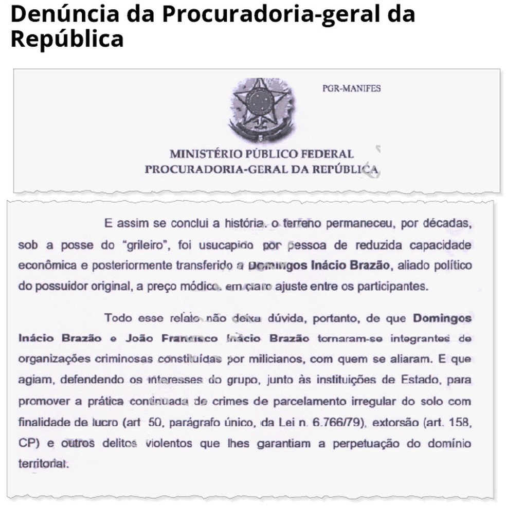 Denúncia da PGR aponta que Domingos Brazão comprou terreno "a preço módico,em claro ajuste com participantes" — Foto: Reprodução de documento