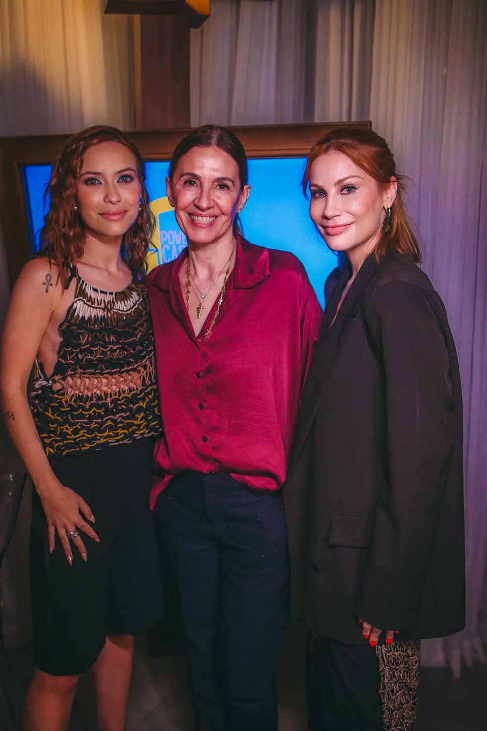 Flora Gil entre as apresentadoras Bebel Rendeiro e Scheila Santos — Foto: Lucas Lussac