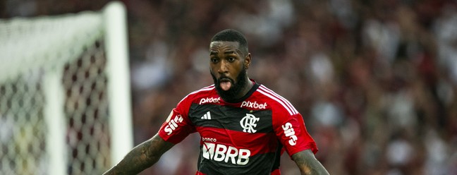 Gerson comemora o gol da vitória do Flamengo sobre o Vasco,neste domingo,no Maracanã — Foto: Guito Moreto