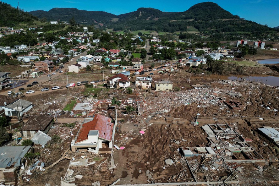 Vista aérea de Roca Sales,no Rio Grande do Sul: partidos buscam entendimento na cidade para evitar disputas — Foto: Nelson ALMEIDA/AFP