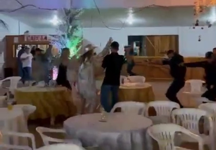 Um vídeo que circula nas redes sociais mostra o momento da correria durante o tiroteio no salão de festas. A Polícia Militar informou que Sebastião atirou contra os militares e foi atingido em resposta (veja o vídeo abaixo. Imagens são fortes).