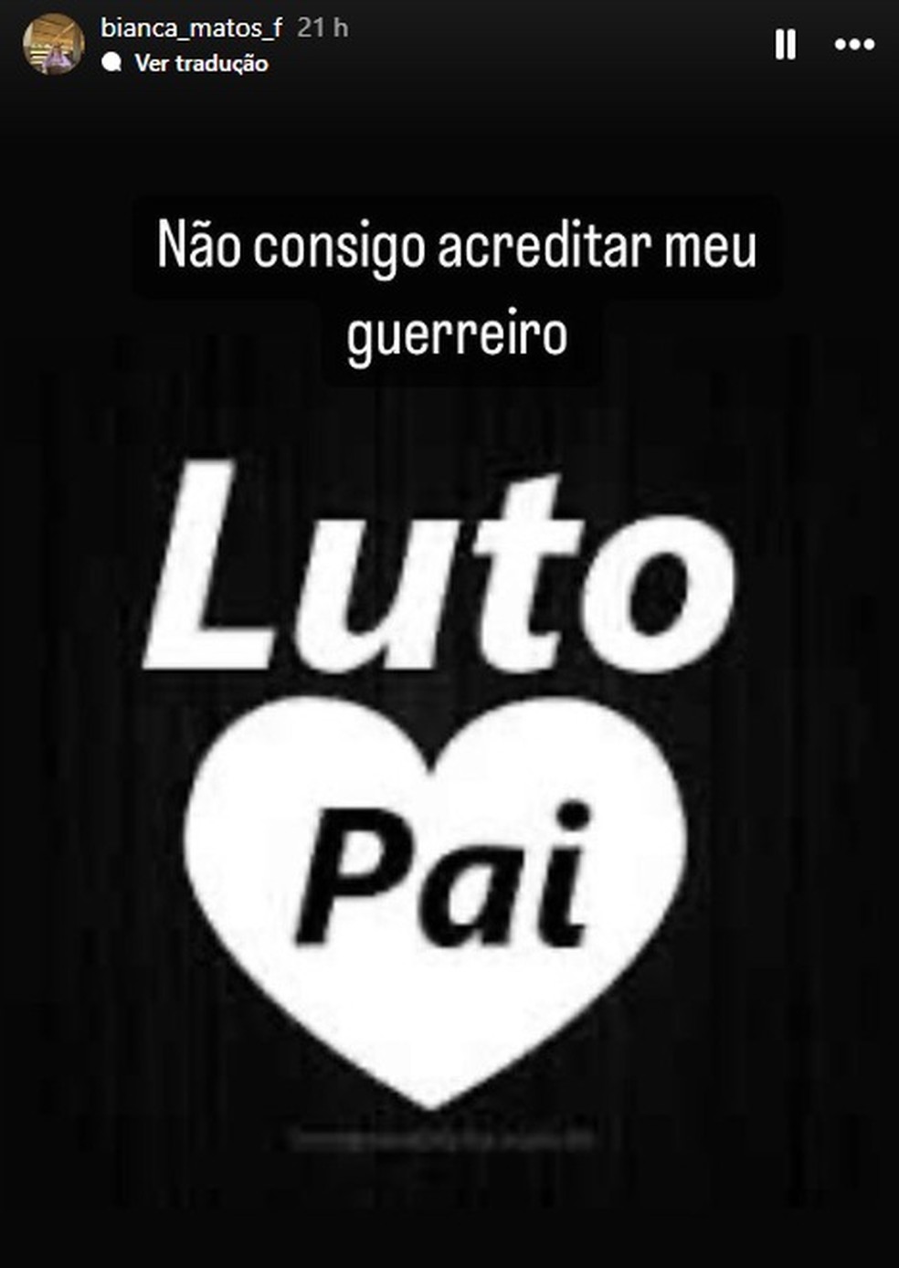 Bianca postou no perfil dela no Instagram a mensagem: "Não consigo acreditar,meu guerreiro",acompanhada de um coração e a palavra "Luto Pai". Ela também postou nos stories o local e o horário do velório de seu pai.