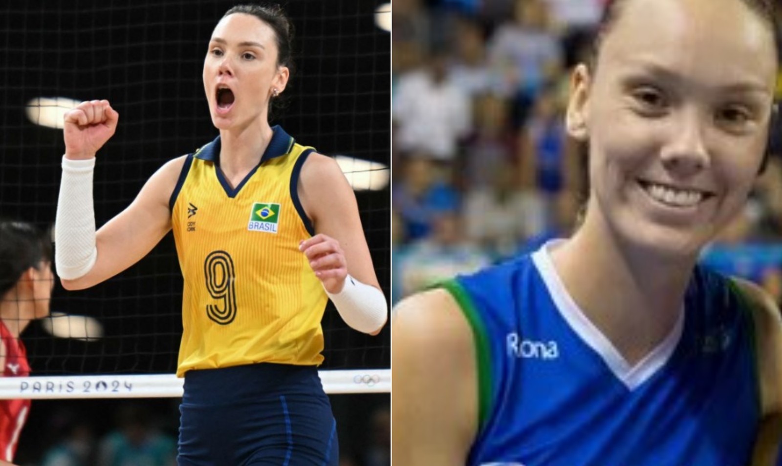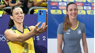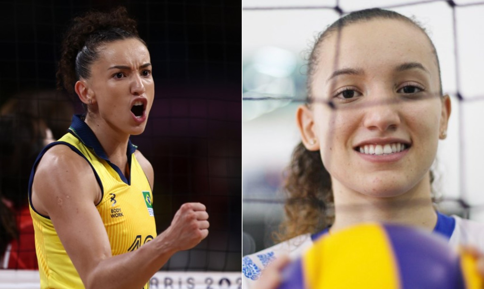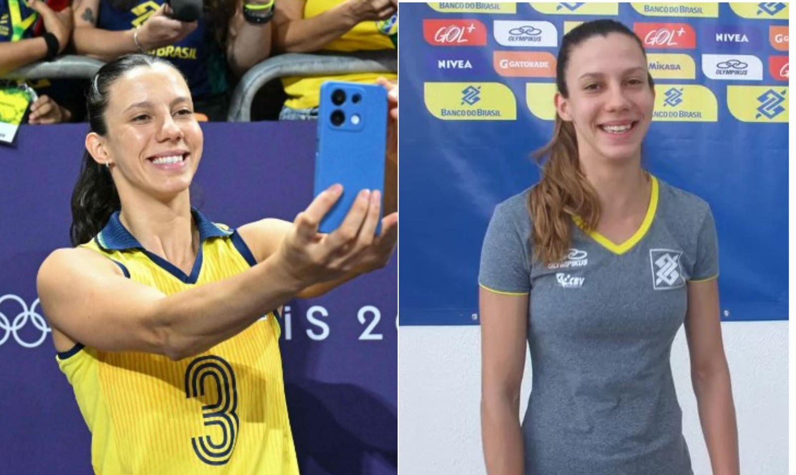 Thaísa nas Olimpíadas de Paris-2024 e quando entrou para o grupo em 2008 — Foto: Divulgação