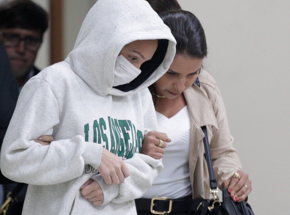 Júlia Pimenta,suspeita de assassinar o namorado Luiz Ormond com um brigadeirão envenenado,se entrega à polícia — Foto: Alexandre Cassiano