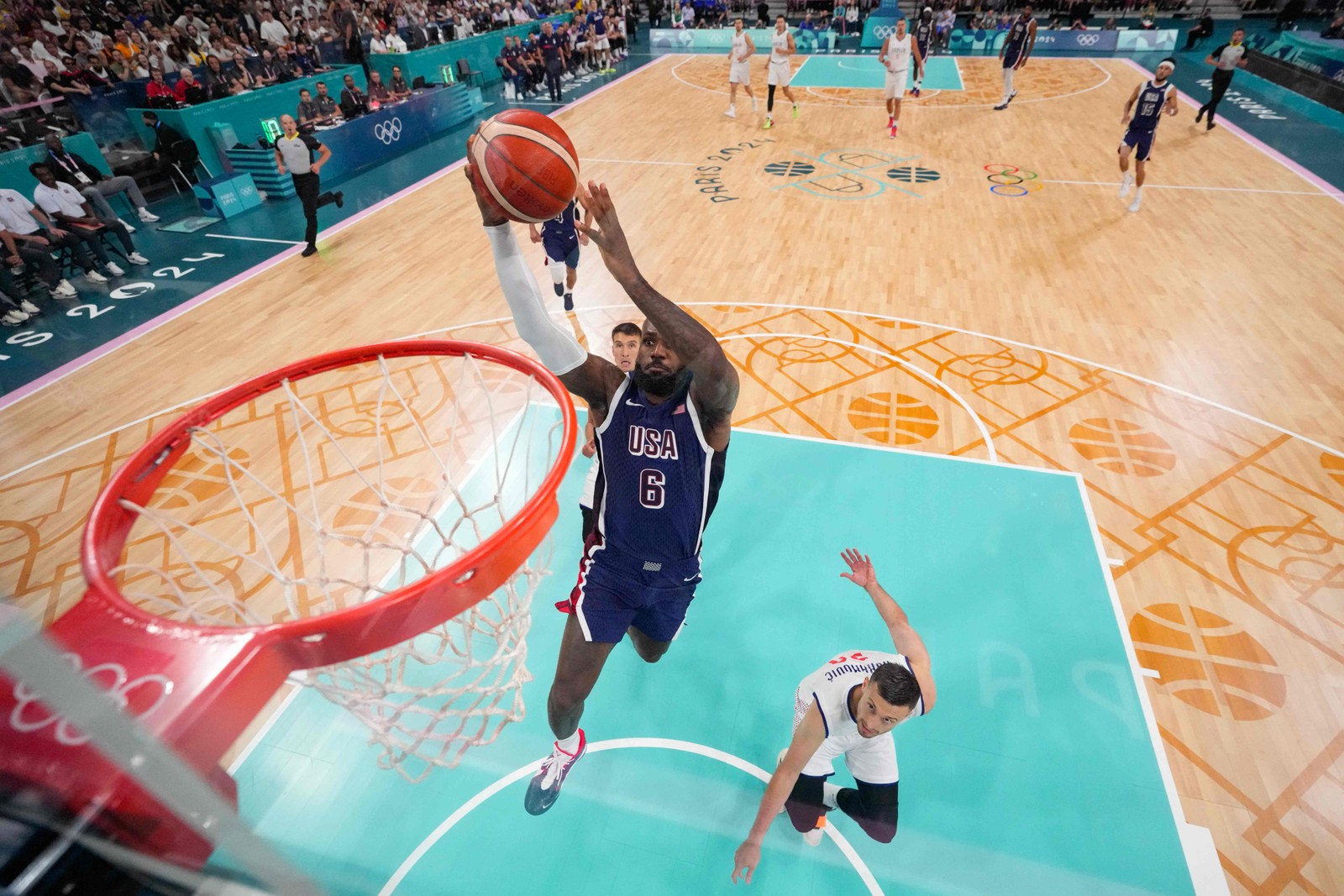 LeBron James,durante partida preliminar masculina de basquete do grupo C entre Sérvia e EUA — Foto: POOL/AFP
