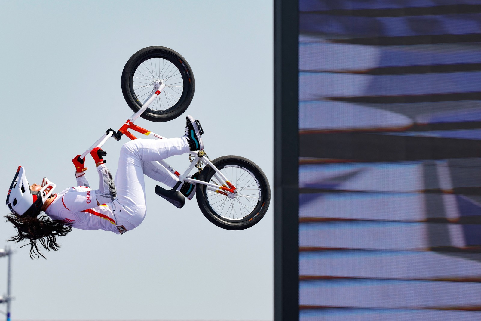 A chinesa Deng Yawen compete na qualificação do Ciclismo Feminino BMX Freestyle Park — Foto: Odd Andersen / AFP