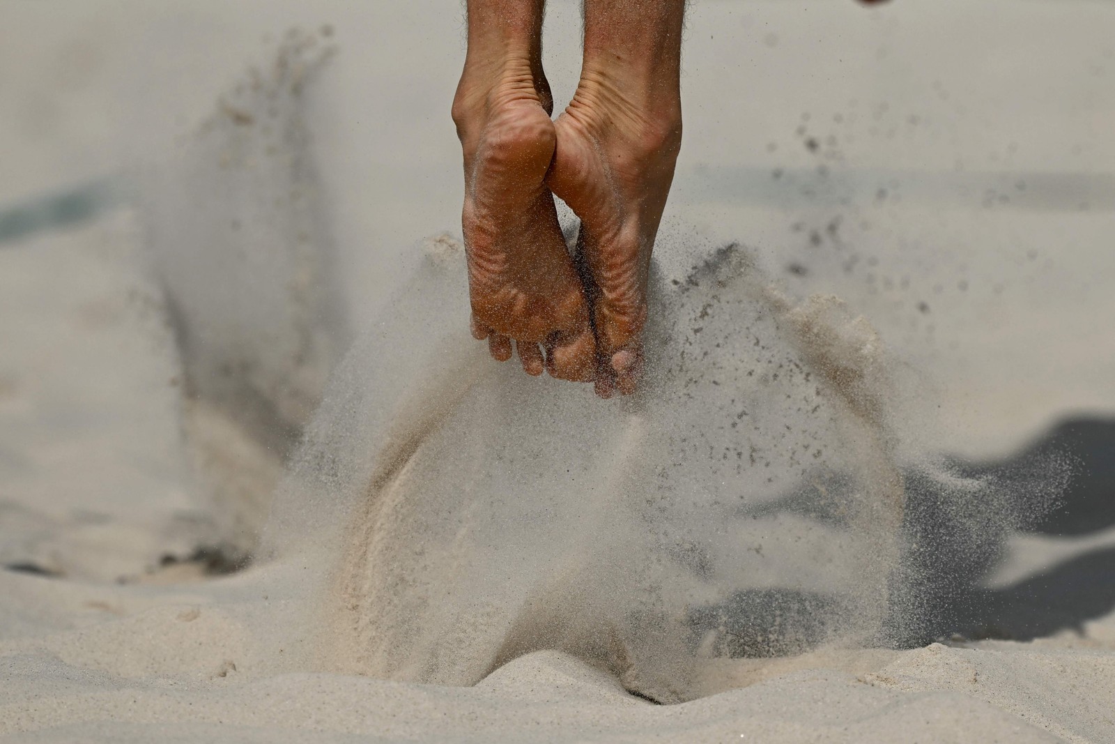 Atleta durante a qualificação do salto triplo feminino no atletismo das Olimpíadas 2024 — Foto: Martin BERNETTI / AFP
