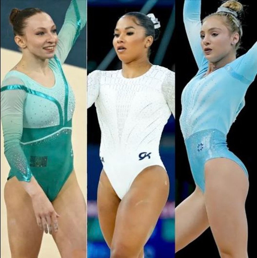 Ana Barbosu,Jordan Chiles e Sabrina Voinea: protagonistas de polêmica em torno da medalha de bronze na final olímpica do solo — Foto: Fotos AFP