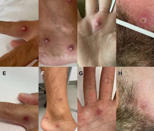 Lesões da varíola dos macacos em paciente na Itália. — Foto: Reprodução/Journal of Infection