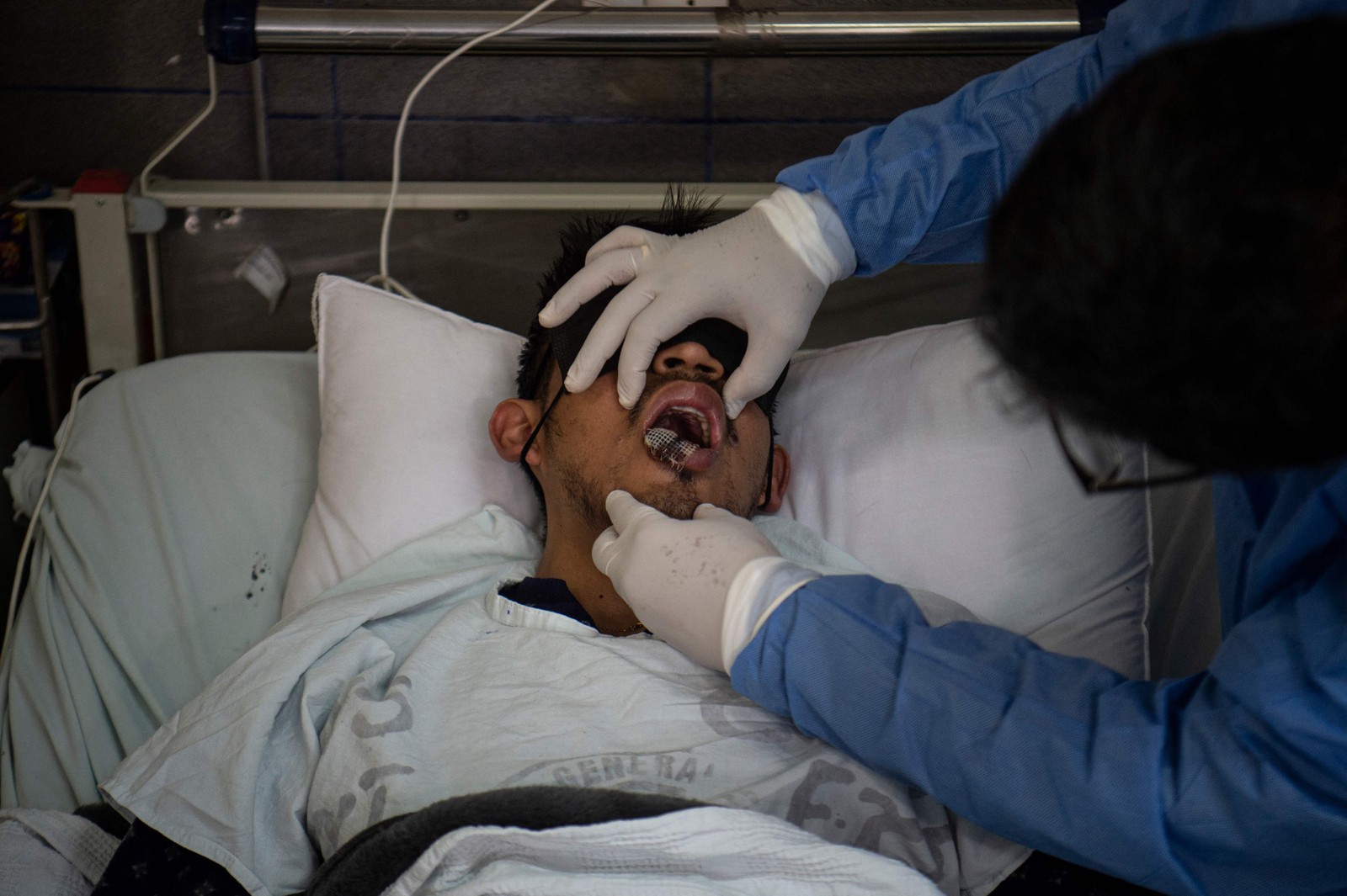 Profissionais de saúde em um centro de tratamento contra a mpox na República Democrática do Congo — Foto: Uerchom Ndebo/AFP