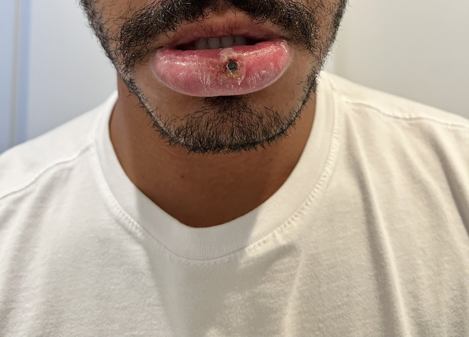João Pinheiro mostra as lesões causadas pela varíola dos macacos em seu lábio — Foto: Reprodução/ Twitter