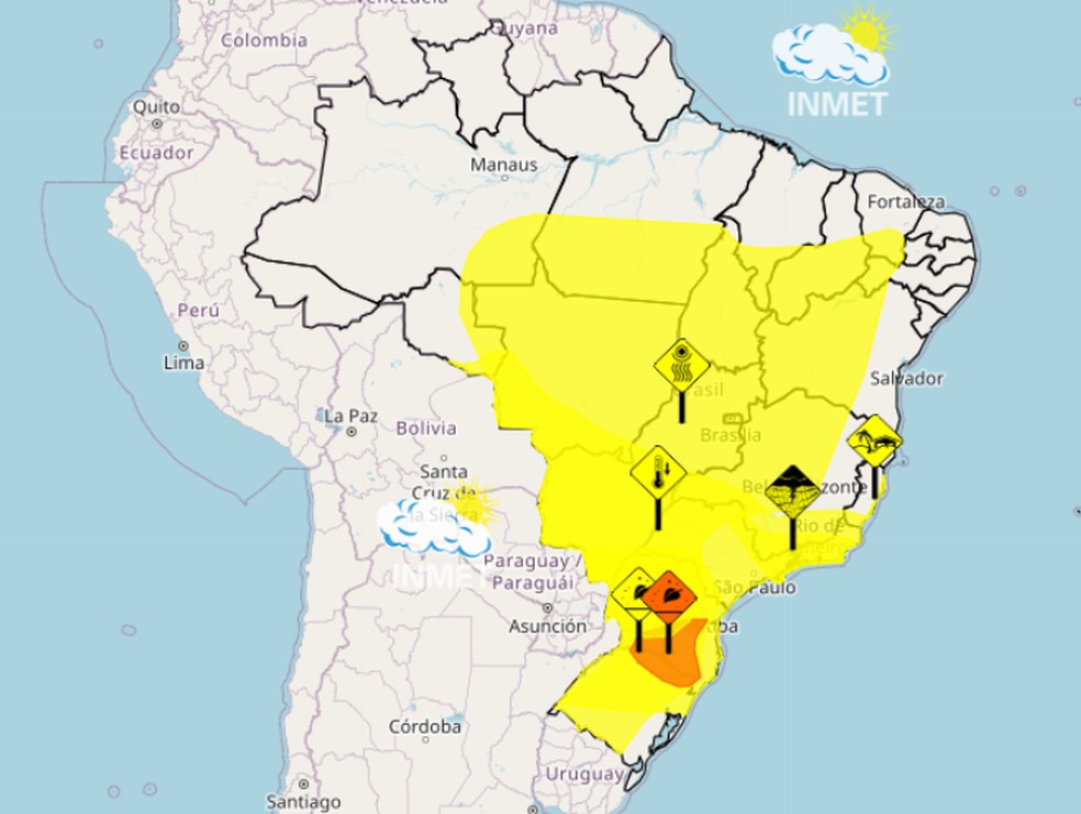 Além destes,o Inmet também alerta para baixa umidade,chuvas intensas no Rio de Janeiro e ventos costeiros no Espírito Santo. Veja os avisos: