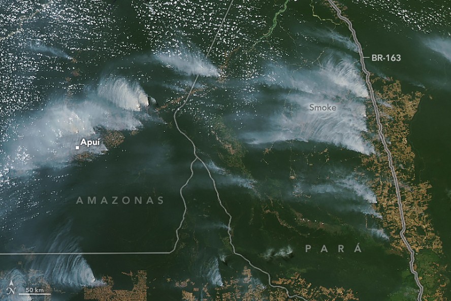 As fumaças de queimadas na Amazônia — Foto: Reprodução / NASA