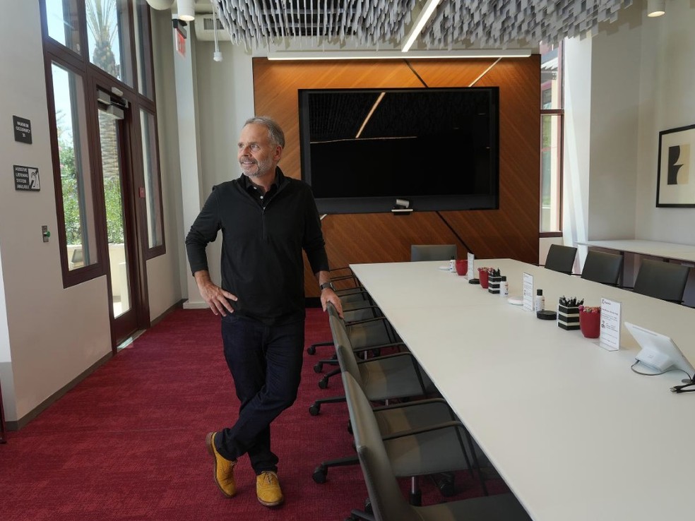 Joe Petersen,sócio-gerente da Kilpatrick Townsend and Stockton,escritório de advocacia que ocupa um espaço de escritórios na Springline,Califórnia — Foto: Jim Wilson/The New York Times