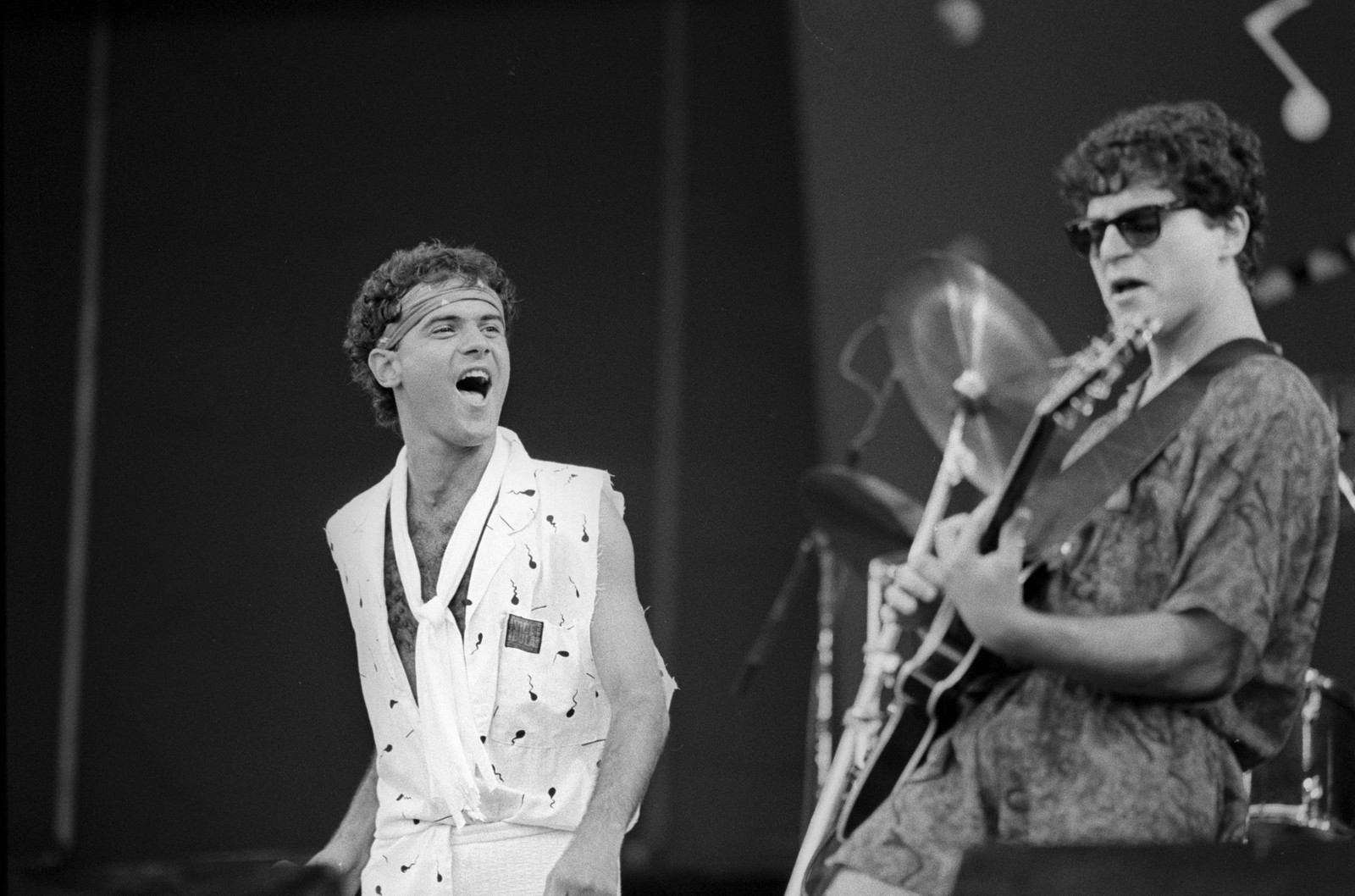 Cazuza e Frejat durante apresentação do Barão Vermelho no Rock in Rio I — Foto: Jorge Marinho / Agência O Globo