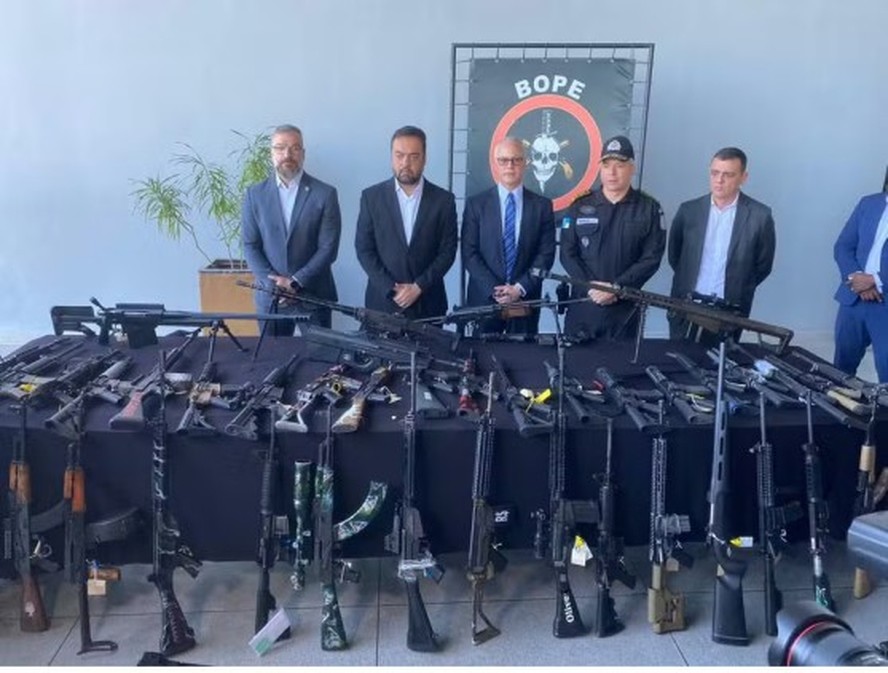— Olha o dado que o secretário colocou aqui. Mais de 90% dessas armas não foram fabricadas no Brasil. Há de se dividir,sim,a responsabilidade. E aqui não estamos falando em culpa,estamos falando em responsabilidade. Não dá mais nem para a sociedade,nem para as autoridades,ficarem jogando isso nas costas dos bravos policiais.